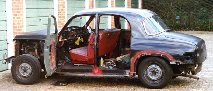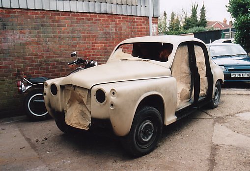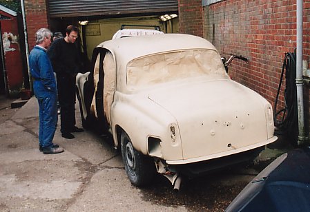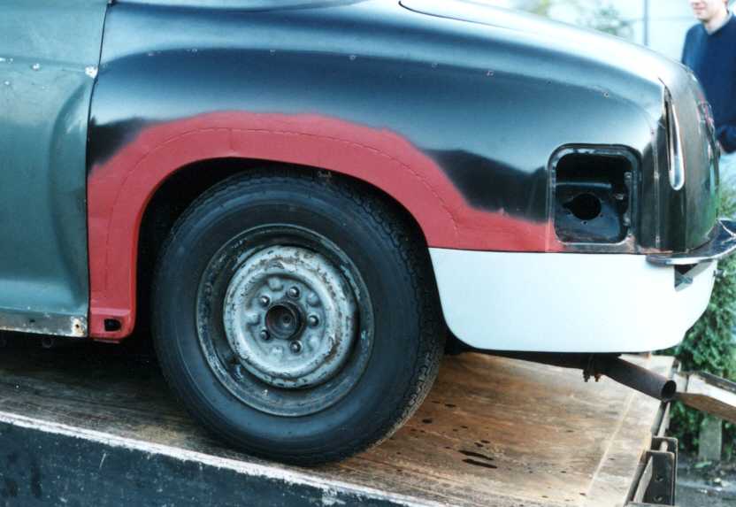 only one door, rear valance missing and work progressing on the wheel arch and B post.
