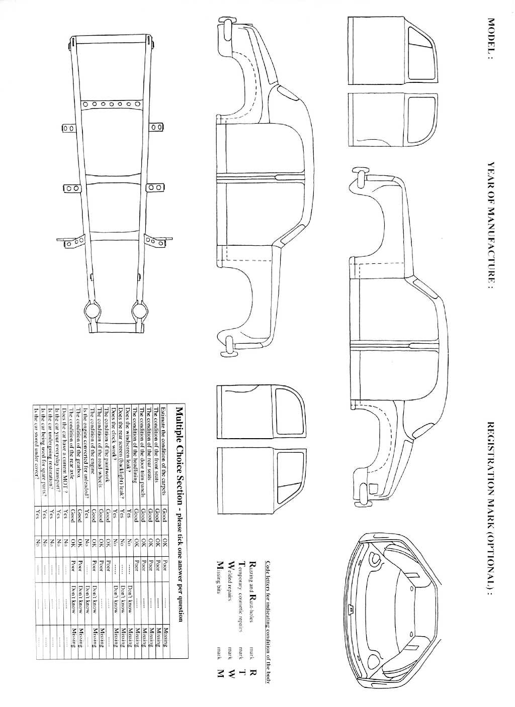 | Areas where temporary repairs with fiberglass etc. have been made | - label with the letter T |